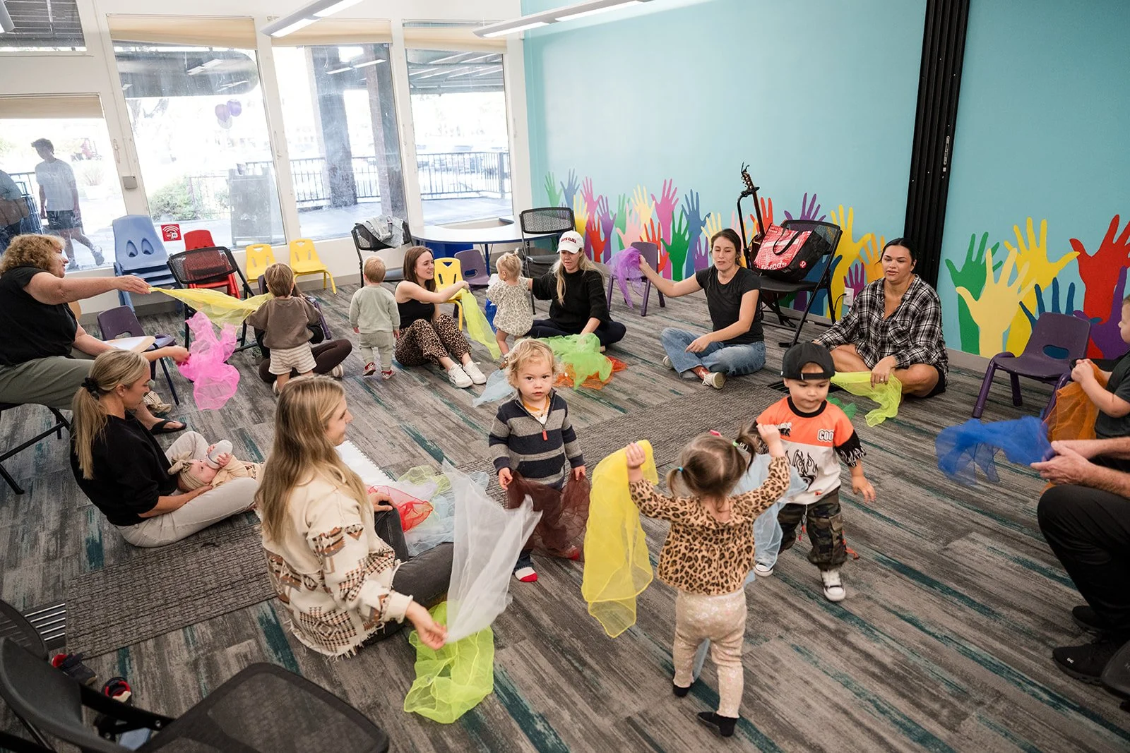 As a parent or caregiver, you attend the class with your child to provide support, encouragement, and play. Capturing photos and videos of music making in action is encouraged too! Each 45-minute class combines structured activities (movement, singable stories, group instrument play, etc.)